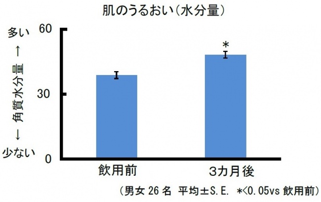 また今回、これら素材とビタミンなどを組み合わせた健康食品を3カ月飲用することで、肌のうるおい(角質水分量)が高まることや踵(かかと)部のカサつきが改善することも確認しました。今後、肌の乾燥で悩まれている多くの方に向けた新しい健康食品の開発に応用してまいります。