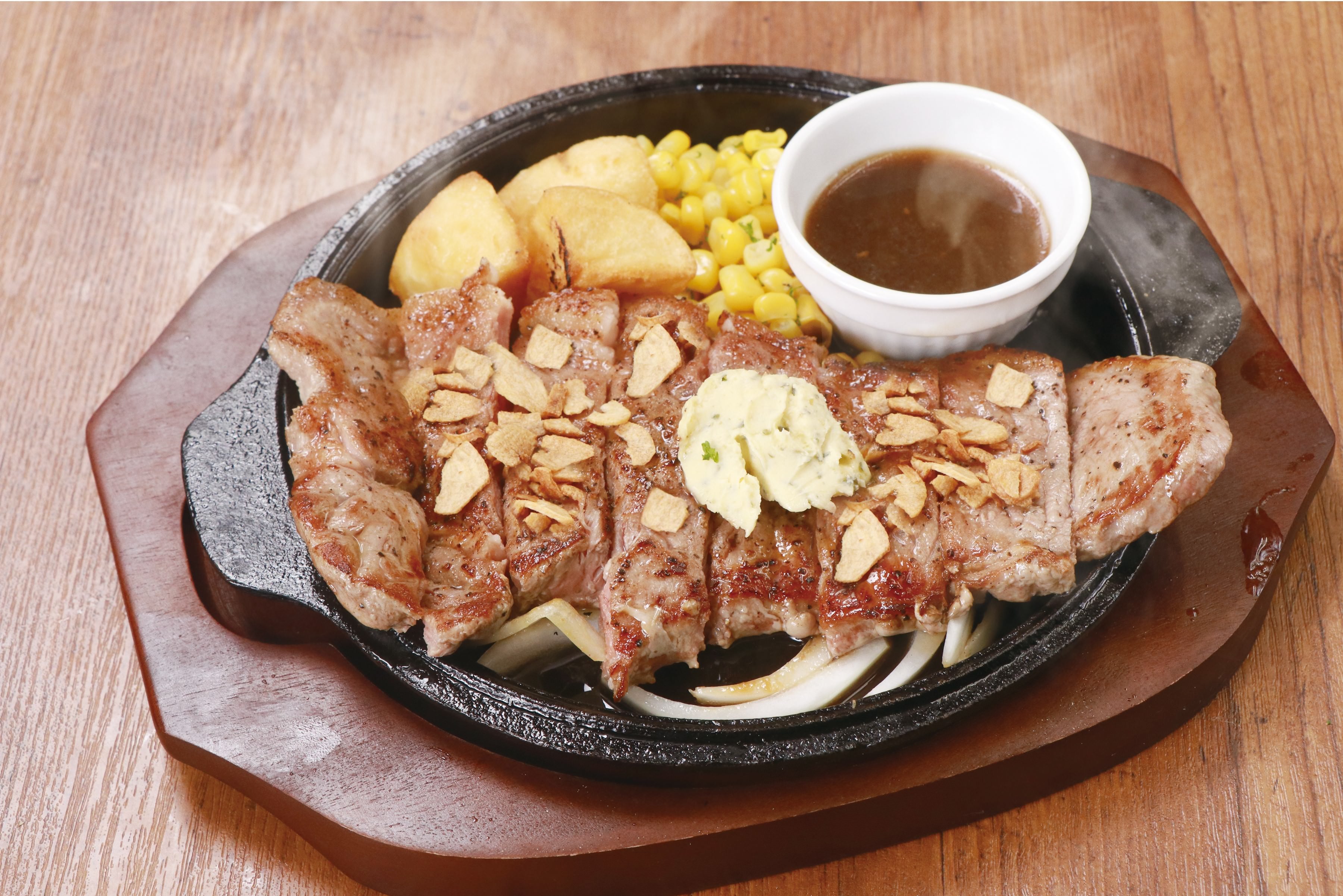 食べごたえのある厚切りの一枚牛タンに、にんにくを塗り、ブラックペッパーを振ってしっかりと焼き上げました。