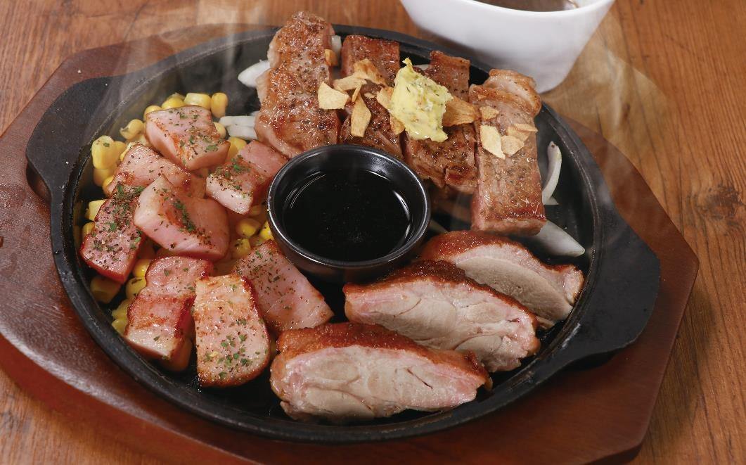■3種盛り合せ(牛サーロイン・ベーコン・合鴨) 1,280円