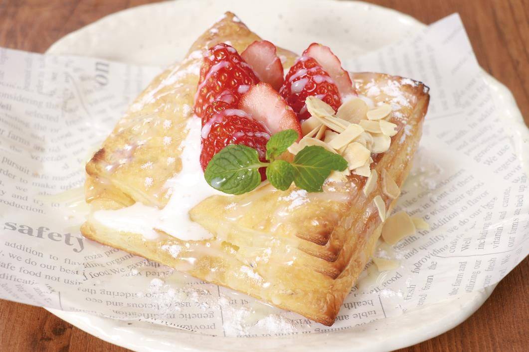 パイ生地はオーダーを受けてからオーブンで焼き上げます。サックサクのパイ生地とフレッシュいちごのハーモニーをお楽しみください。