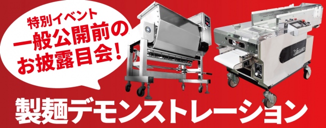 株式会社大和製作所が開発した新型製麺機「リッチメンゴールドII型」のデモンストレーションを実施。
