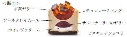 サワーチェリーのゼリーとホイップクリームをしのばせたアールグレイのムースをチョコでコーティングし、紅茶のゼリーをのせました。お好みでミルク風味のシロップをかけるとミルクティーの味わいを楽しめます。
