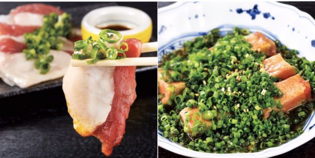 表面を芳ばしく炙り、タレと牛タンが隠れるほどに乗せたねぎと一緒にお召し上がりいただきます。とてもジューシでお酒がすすむ一品です。