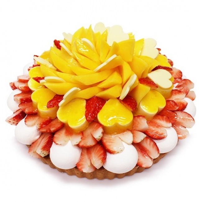 カフェコムサ/「恋みのり」いちごとマンゴーのケーキ(1ピース)990円 *3月14日(土)まで販売 *画像はイメージです。 *「店内でのお食事」と「お持ち帰り」で、どちらも同一税込価格(税抜価格は異なります。)