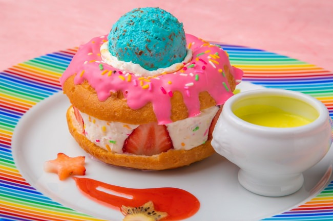 もちもちの自家製ドーナッツにいちご、みかん、レモンムース、ストロベリーアイスをたっぷり挟んだ原宿最新グルメの”ドーナッツパンケーキ”です!