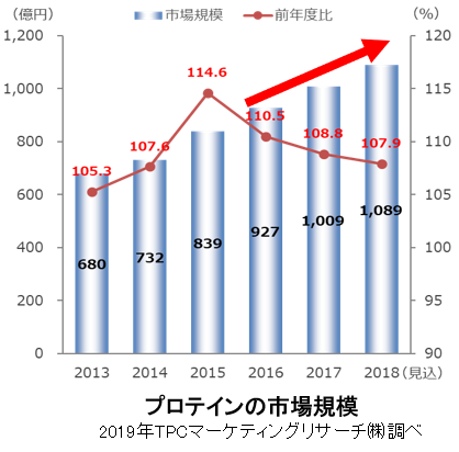 食生活において、たんぱく質を多く摂ることを心掛ける方が増加し、”プロテインブーム”となっています。さらに2020年はスポーツへの関心や健康志向の高まりから、プロテイン市場の活性化が期待できます。