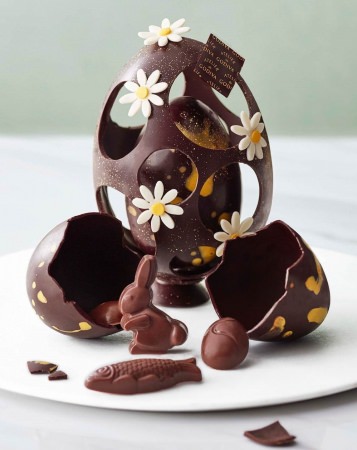 すべて食べられるチョコレートでできたイースターエッグ。卵の中にはイースターのモチーフたちが隠れています。