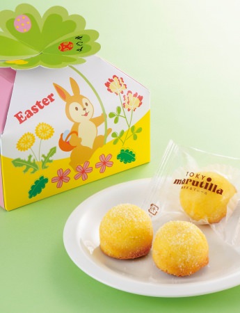 食べやすい一口サイズのカステラ、まるてぃーらをイースター限定のパッケージでご用意。やさしい甘みが特徴です。