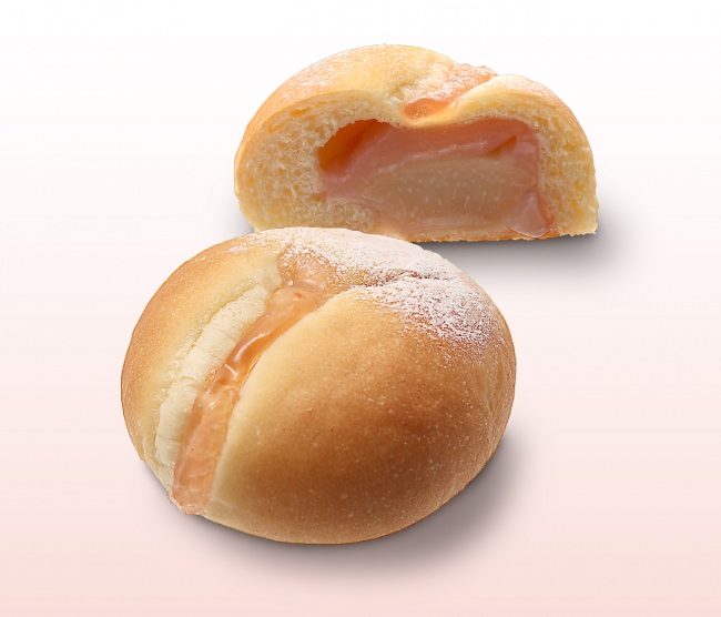 なめらかな桃のあんこと白桃を包み込んで、優しい甘さに仕上げた桃のあんぱんです。