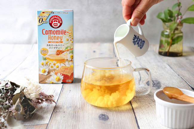ポンパドールハーブティーブランドが日本にやってきてから50年。その頃も今も不動の人気No.1は「カモミール」。そのカモミールとはちみつビッツをブレンドした新商品「カモミールハニー」が誕生しました。
