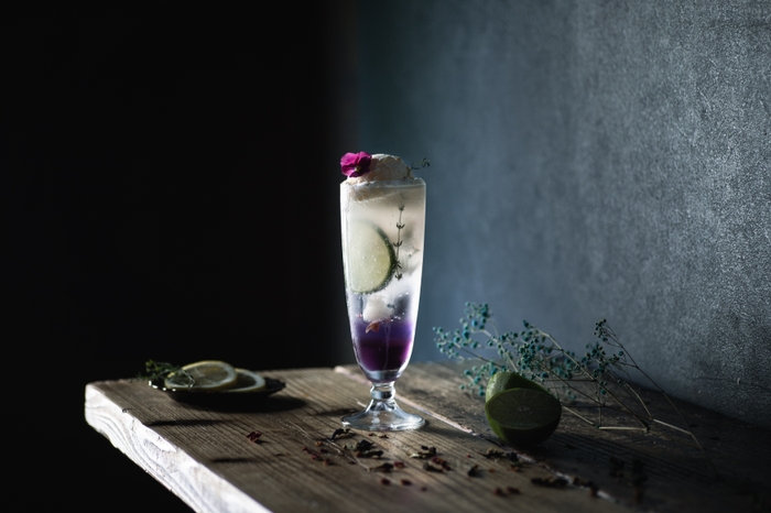 ラベンダーやバタフライピー、ライムで仕上げた「ラーヘンデル」 。