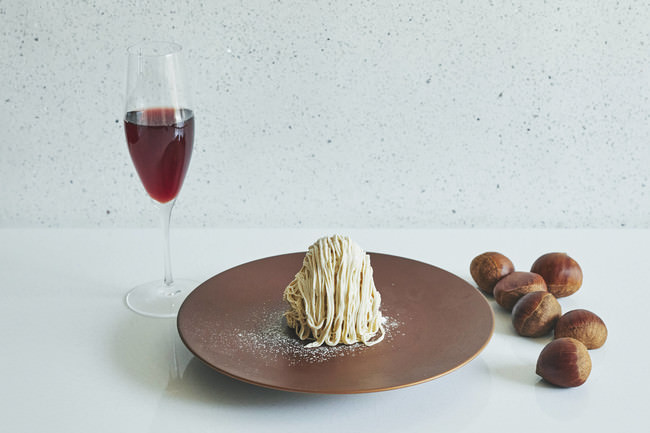 合わせるドリンクはカカオビネガーとカシスを合わせたオリジナルカクテル(ノンアルコースカクテルもご用意)。和栗の香ばしさ、重めのフローラル感を引き立たせ、後味を軽やかに仕上げるペアリングです。
