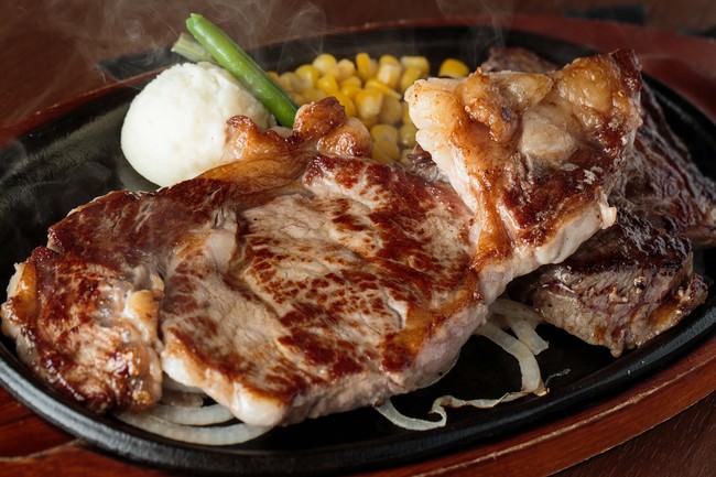 現在は五反田店の他に、恵比寿店、上野店、ふじみ野店と展開し、ランチタイム・ディナータイムに肉厚ジュ―シーなステーキとハンバーグを提供しています。