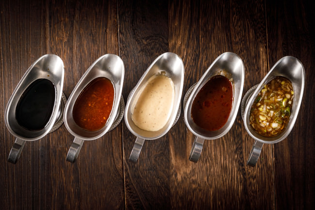 かつおだしの利いた醤油ベースのソースに大根おろしを加えて、あっさりと仕上げました。