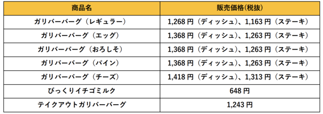 株式会社アレフ(本社:北海道札幌市、代表取締役社長:庄司 大)が展開するハンバーグレストラン「びっ くりドンキー」は、毎年ご好評いただいている、400g のハンバーグ、「ガリバーバーグ」を使用した「ガリ バーバーグディッシュ」と「ガリバーバーグステーキ」を、9 月 25 日(金)から 11 月 17 日(火)までの 期間限定で販売します。 「ガリバーバーグディッシュ」、「ガリバーバーグステーキ」は、びっくりドンキーのメニューで一番の大 きさを誇る、「ガリバーバーグ」を使用しています。驚きの大きさで、食欲の秋を思う存分味わいたい人にお すすめのメニューです。 「ガリバーバーグディッシュ」は、ハンバーグとごはん、サラダが一つのお皿に盛られたワンプレートの スタイルです。「ガリバーバーグステーキ」は、ハンバーグと付け合わせを鉄板で提供します。 さらに、今年はテイクアウトメニューもご用意しておりますので、自宅でもお腹いっぱい召し上がれま す。 店内飲食では、400g のハンバーグを無料の味変セットで、いろいろな味に変えて楽しむことができます。 また、通常のトッピングメニューとも掛け合わせることで、自分だけの「ガリバーバーグ」にアレンジ可能 です。 「びっくりイチゴミルク」の販売も同時に開始します。てっぺんには、北海道ソフトクリームがのせられ ており、およそ 25cm の高さを誇る、豪快なドリンクメニューです。
