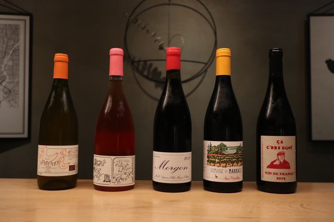 ナチュラルワインとは、文字通りなるべく自然の力を使って作ったワインです。化学肥料や殺虫剤を極力使わずに育てたぶどうを使用し、酸化防止剤として亜硫酸塩を使わない、あるいは最小限にとどめて作られています。また、ナチュラルワインでは、スキンコンタクトしたものや無濾過のワインもあり、それらは独特な風味をもっています。エチケットも個性的で「面白い」ワインがとても多いです。