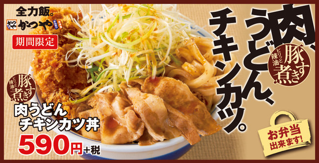 とんかつ専門店「かつや」を展開している株式会社かつや(本社:東京都千代田区/代表:大内 勇一)は、国内「かつや」にて、「豚すき煮肉うどんチキンカツ丼」を10月2日(金)より期間限定で販売いたします。