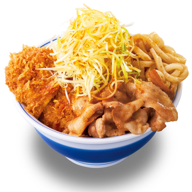 秋の訪れと共に、かつや人気の合盛りシリーズに煮込みメニュー「豚すき煮肉うどんチキンカツ」が登場。豚バラ肉/チキンカツ/うどんを、かつや特製の丼タレで煮込み、白髪ねぎを添え後がけ辣油でピリ辛仕立て。「豚すき煮肉うどんチキンカツ」は、丼か定食が選べます。なお、「豚すき煮肉うどんチキンカツ丼」はお弁当として、テイクアウトも可能です。