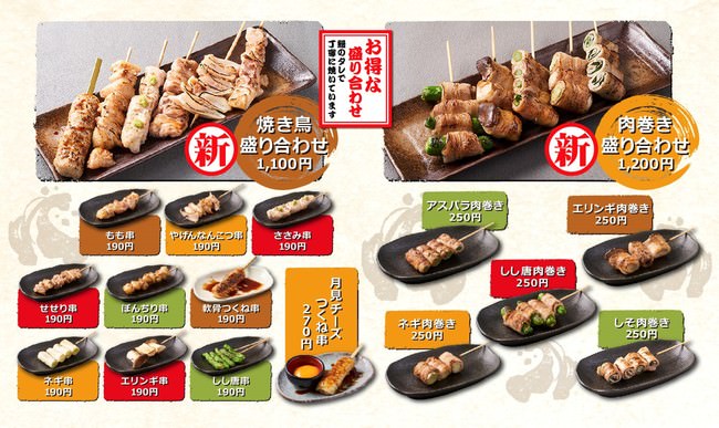 ◆焼鳥・串焼き(各種190円~)