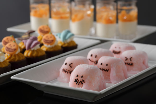 スイーツではジャック・オ・ランタンのタルト、お化けモチーフの求肥をまとったメロンショートケーキ、メロン果肉のオレンジが鮮やかで魔女のスープのようなブラマンジェメロンスープなどハロウィーン気分を盛り上げるメニューも登場いたします。
