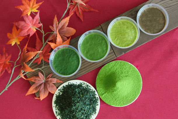 抹茶2品種・煎茶1品種・ほうじ茶味