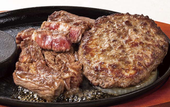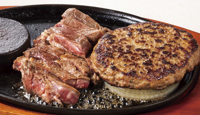 ステーキのどんで今一番人気の「激アツステーキ」が、肉汁が溢れだす自慢の「どんハンバーグ」と、