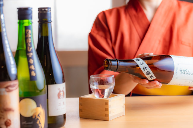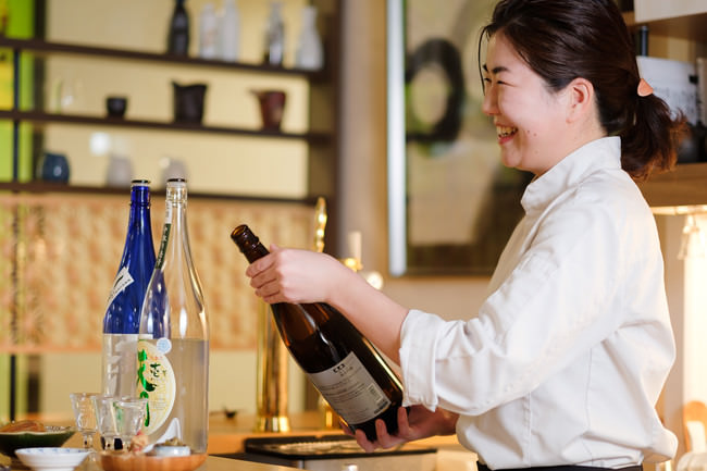 姉妹店「日本酒Bar KURAYOSHI」の『利き酒師』の資格をもつ女将がフルコースに合う日本酒をセレクトし、ご提供いたします。