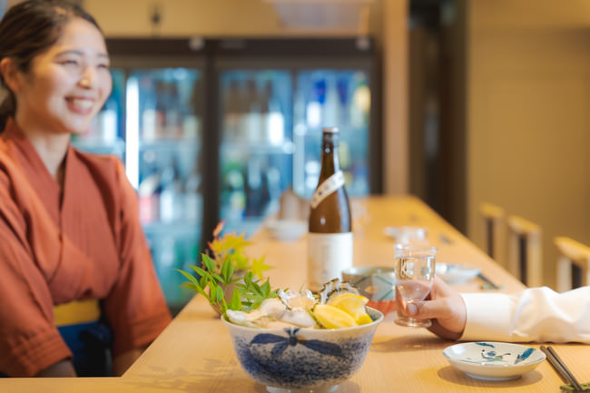 - ■ 店内のバーカウンターで楽しむ“日本酒”と“牡蠣”
