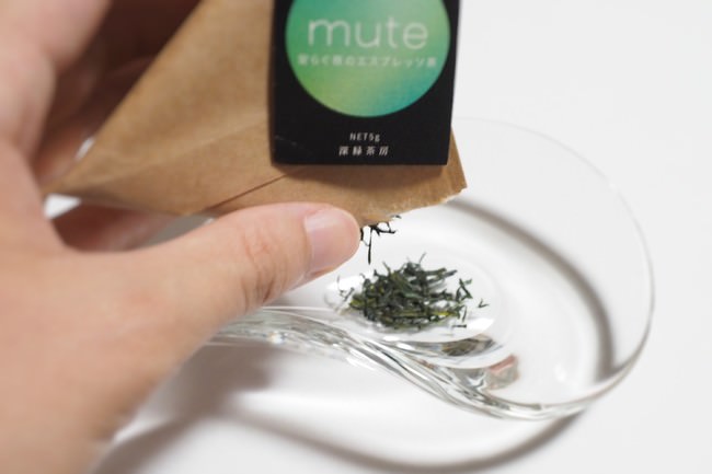 “mute(ミュート)”は、伝統的な「しずく茶」をよりカジュアルに、若い世代も楽しめるように”再デザイン”しました。「しずく茶」とは急須ではなく皿に茶葉を広げ、少量の水でお茶を抽出をすることで、上質な茶葉の凝縮された旨味をじっくりと五感で味わうことができるお茶の楽しみ方です。