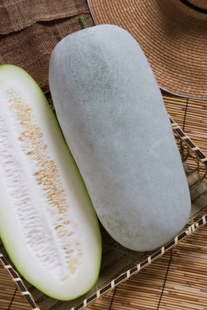 持った時にずしっと重たく、表面に白い粉が吹いているものが熟していておいしいです。トウガンは実が熟すと白い粉が付くのが特徴ですが、果実表面の日焼けを防ぐためともいわれています。これは品種によって違い、最近は全く粉が出ない品種もあります。その場合は傷んでいないか確認して、鮮やかな濃い緑色をしている方を選びましょう。