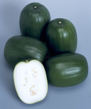 果形は俵形のミニトウガンで、果肉はやわらかくておいしい!貯蔵性にも優れます。