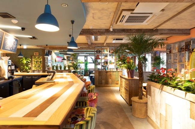 ハワイから取り寄せた雑貨やサーフボードが飾られた「ハワイローカルのリビング」にいるような雰囲気の店内、居心地の良いソファ、やさしいコナコーヒーの香りに包まれながら、ゆっくりとくつろげる心地良い空間となっております。シグネチャメニューである手づくりのハワイアンパンケーキのほか、お腹いっぱい満たされるボリューミーなロコモコ、ガーリックシュリンプ等のハワイアンフードや、店内焙煎したコナコーヒーをはじめ豊富な種類のドリンクメニューをご提供しております。夜は照明を落として、落ち着いた雰囲気の中でアラカルトやアルコールでディナータイムをお過ごしいただけます。