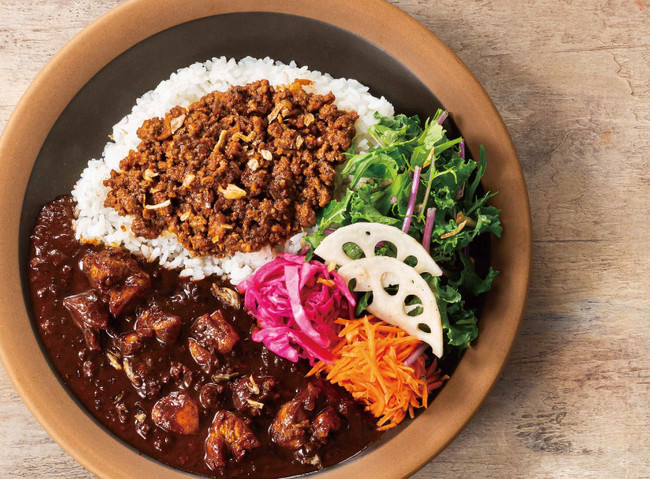 新登場「オリジナルチキンカレー」と、新鮮なトマトの旨味をギュッと詰め込んだ「キーマカレー」で、2種類のお肉が楽しめる「あいがけカレー」です。