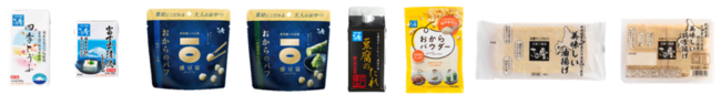 (四季とうふ、富士山の清流とうふ、感豆富 おからのパフ、豆腐のたれ、おからパウダー、