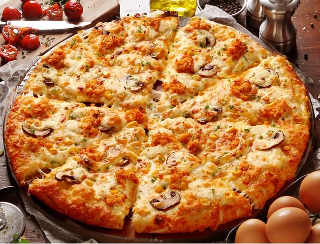 カニの旨味が凝縮した「特製クラブソース」と、クリーミーでコクのある「特製グラタンソース」の2種類の特製ソースでカニの味わいを最大限に引き出し、さらに香り豊かなブラウンマッシュルームや甘みのあるコーンもトッピング。カニの旨みとこんがり焼けたチーズ、マヨネーズの香ばしさが、口の中に広がる一品です。