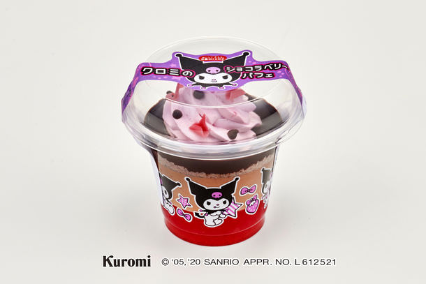 5種類のクロミがプリントされた可愛いカップに、甘酸っぱいベリーゼリーとビターなチョコムース、ココアスポンジを重ね、苺のホイップクリームと濃厚なチョコソースで仕上げました。見た目にも可愛いカップスイーツです。