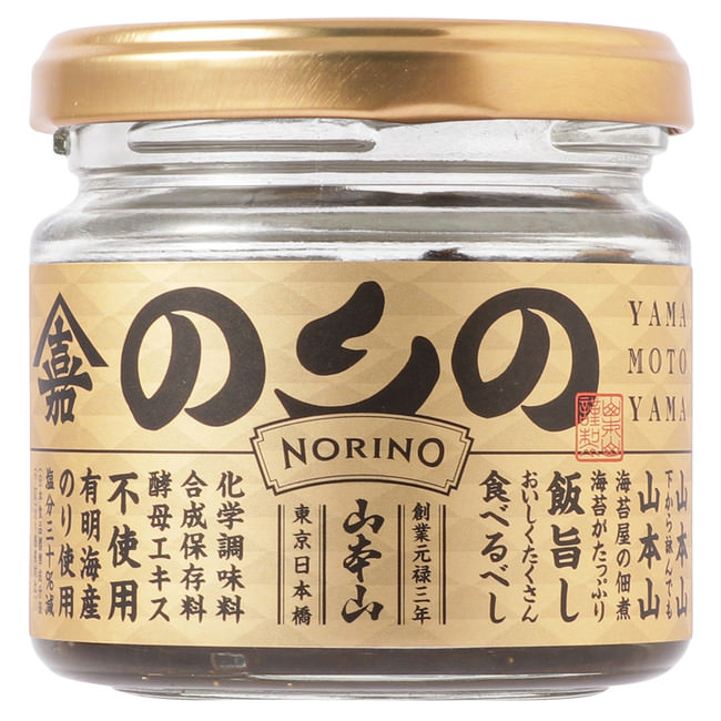 山本山が作る“海苔の”佃煮『のりの』は、「上から読んでも山本山、下から読んでも山本山。」で多くの方に親しんで頂いた山本山のキャッチコピーに因んだ商品名を冠しました。また、パッケージデザインには江戸期の伝統的な表現を採用しつつ、現代的な文字デザインも取り入れて、今の時代にふさわしいデザインになっています。
