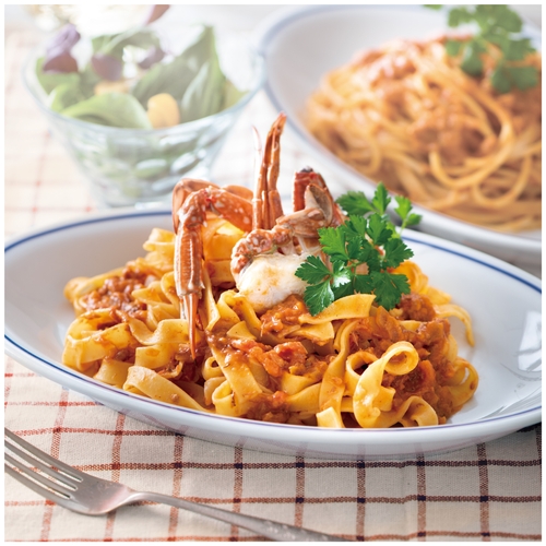 イタリア産の真っ赤なトマトに、渡り蟹のほぐし身を贅沢に加え、国産の生クリームによってまろやかな味わいに。リニューアルして、コク・旨味・クリーミーさが格段にアップしました!コクのある「爪・足」、甘味のある「ボディ」の2種類の身をバランス良く使用することで、渡り蟹本来の旨味をギュッと詰め込んでいます。甘味やクリーミーさが強く、まろやかな口当たりは、お子様も大好きな味。渡り蟹の風味を口いっぱいに感じられる、ザ•贅沢なパスタソースです。