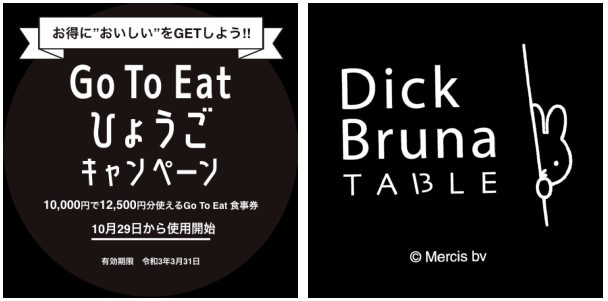 フェリシモが展開する「Dick Bruna TABLE [ディック・ブルーナ テーブル]」は、2020年10月29日から農林水産省が実施する「Go To Eat ひょうごキャンペーン」に参画しました。「プレミアム付き食事券」が使用できるほか、オンライン予約サイト「トレタ」で予約し来店すると最大10,000のFTPオンラインポイント「Eatポイント」が付与されるキャンペーンも対象になります。また「Go To トラベルキャンペーン」で兵庫県が配布する地域共通クーポンも10月28日より使用可能になりました。「Go to キャンペーン」は新型コロナウイルス感染症予防の取組を実施し、事務局の審査・承認を得た店舗が参画しており、お食事やご旅行のたいせつなひとときをよりお得に安心してお楽しみいただけます。Dick Bruna TABLEでは新型コロナウイルス感染拡大防止の強化策として、従業員の衛生管理や除菌対策を行っています。飛沫防止のためのアクリル板を使用し、お客さまへ検温のご協力をお願いしています。
