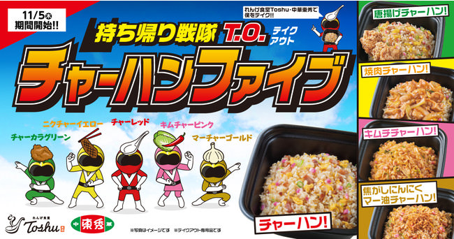 中華料理店「れんげ食堂Toshu」「中華東秀」を運営しているオリジン東秀株式会社(本社:東京都調布市/代表:沢村 弘也)は、11月5日(木)より「持ち帰り専用商品 チャーハンファイブ」を販売いたします。また、まずは皆さまに一度お持ち帰りいただきたく、11月5日(木)~11月15日(日)はスペシャルプライスで販売いたします。