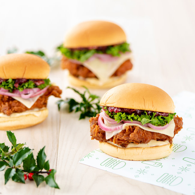 株式会社サザビーリーグ(本社:東京都渋谷区千駄ヶ谷/代表取締役社長 角田良太)が運営するニューヨーク発のハンバーガーレストラン「Shake Shack®」(以下、シェイクシャック)は、アメリカのクリスマスシーズンでは定番メニューとなっているチキンとクランベリーソースをイメージした「クランベリーチキン」を、11月4日(水)~12月25日(金)までの期間限定で販売いたします。赤い自家製クランベリーソースや緑のケールが華やかでクリスマスらしく、ホームパーティーにぴったりなグルメバーガーです。