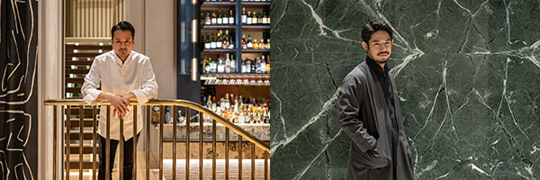 店内インテリアを担当したのは、オーストラリア・シドニーを拠点に、世界的に活躍するデザイン事務所「Luchetti Krelle」。“静寂と活気”をテーマに、2層ある店内を、相反する要素を対比させた創造的な料理に相応しい洗練されたステージを作りあげました。9階は“静寂”をテーマに、都会の喧騒を忘れられるような落ち着きのある自然素材とダークカラーを基調にした静謐あるエレガントな空間に。一方10階は“活気”をテーマに、太陽の光が降り注ぐ明るいテラスへと続く開放的な空間を活かし、上質でありながらもモダンで軽快な印象に。
