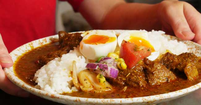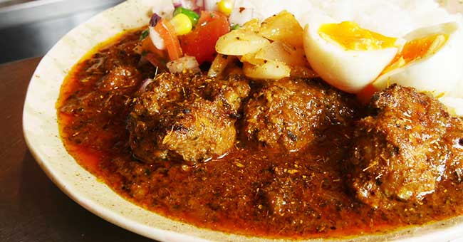 名物は数十種類のスパイスを配合したオリジナルの「スパイスチキンカレー」。