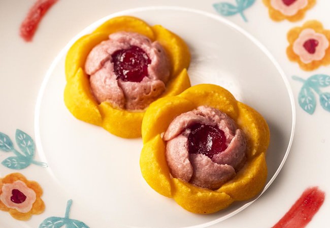 味わえるお花は全部で6つ! 最も人気の「チューリップローズ」は、ラングドシャのチューリップの中にホイップショコラのローズを咲かせた代表作。ベリー・パッションマンゴー・キャラメルナッツの3味を集めました。オレンジ&ハイビスカス香る花びらにベリーコンフィチュールの朝露をのせた「ワイルドオレンジローズ」は2020年の新作。ころんと可愛い新作ベイクドスイーツ「ローズガーデン」からは、カシスバニラとカルダモンシトロンの2味が参加です。どれから摘まむか迷ってしまう、お花のフルコースを楽しんで!