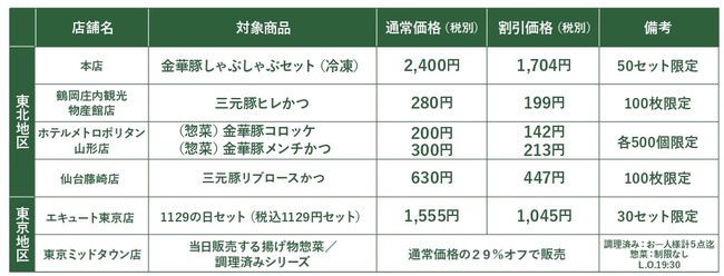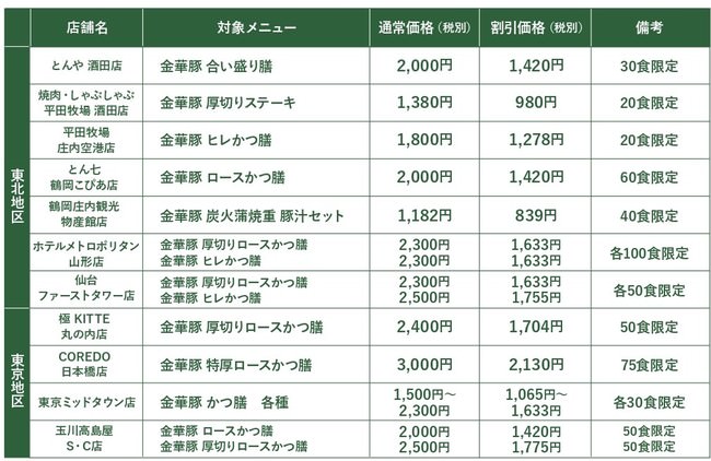 ※ 一部店舗(とん七鶴岡こぴあ店、ホテルメトロポリタン山形店、仙台ファーストタワー店、仙台藤崎店)は2020年11月28日(土)も同一の割引を行います。