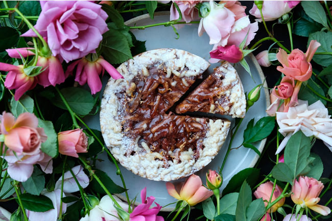 滋賀県でオリジナルのばら「WABARA」を栽培する「ローズファームケイジ」の食用のWABARAをふんだんに使用したここでしか味わえないオリジナルアップルタルト。WABARAのドライローズとラズベリーの香りをりんごに移し、アーモンドクリームとクルミで焼き上げました。また、この珍しい「WABARA」は、エースホテル京都1階のロビーに日曜限定で登場するポップアップストアにて販売しています。お好きな花束を選び料金箱にお金を投入していただく無人販売所スタイルでの販売です。