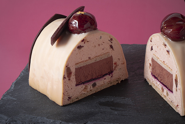 「栗のブッシュ・ド・ノエル」は、濃厚なフランス産マロンペーストにハイカカオショコラの苦味とカシスの酸味が加わることで、奥深い味わいに仕上げられた、大人が楽しめるケーキです。ブッシュ・ド・ノエルはフランス発祥のクリスマス定番のケーキであり、ブッシュは薪、ノエルはクリスマスを意味し、クリスマスの薪をイメージしています。フランスの伝統が元になった、クリスマスを演出するアイテムです。さらに、ホテルメイドならではのリッチな味わいとルックスがロマンチックなクリスマスを演出します。
