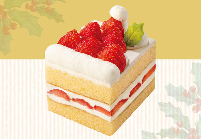 トップバッターは、『苺のショートケーキ~サンタの帽子~』です。雪の上で見つけたサンタさんのおとしものは、苺ぎっしりのごちそう帽子。ミルクの香りあふれるクリームと、きめ細かな口どけのスポンジケーキをお楽しみいただけます。中にもぎっしりと苺をサンド。