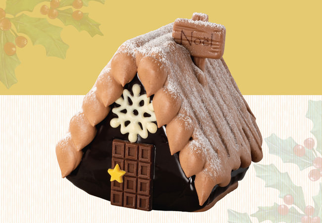 2つ目は『聖夜のショコラハウス』。ショコラをたっぷり味わえる、雪降る聖夜のクリスマスハウスです。5層全部がショコラ層。濃厚なコクのショコラムース&ショコラスポンジに、ショコラクリームも添えて、クリスピーチョコがサクサクの隠し味です。