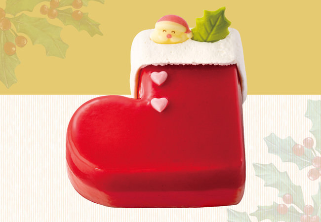 4つ目は『木苺のクリスマスブーツ』。おいしいものがいっぱいつまった、サンタさんの真っ赤なブーツです。甘酸っぱくとろける木苺ムースに、ジューシーな木苺コンフィチュール。バニラババロアとスポンジの優しいクリスマスハーモニーをお楽しみください。
